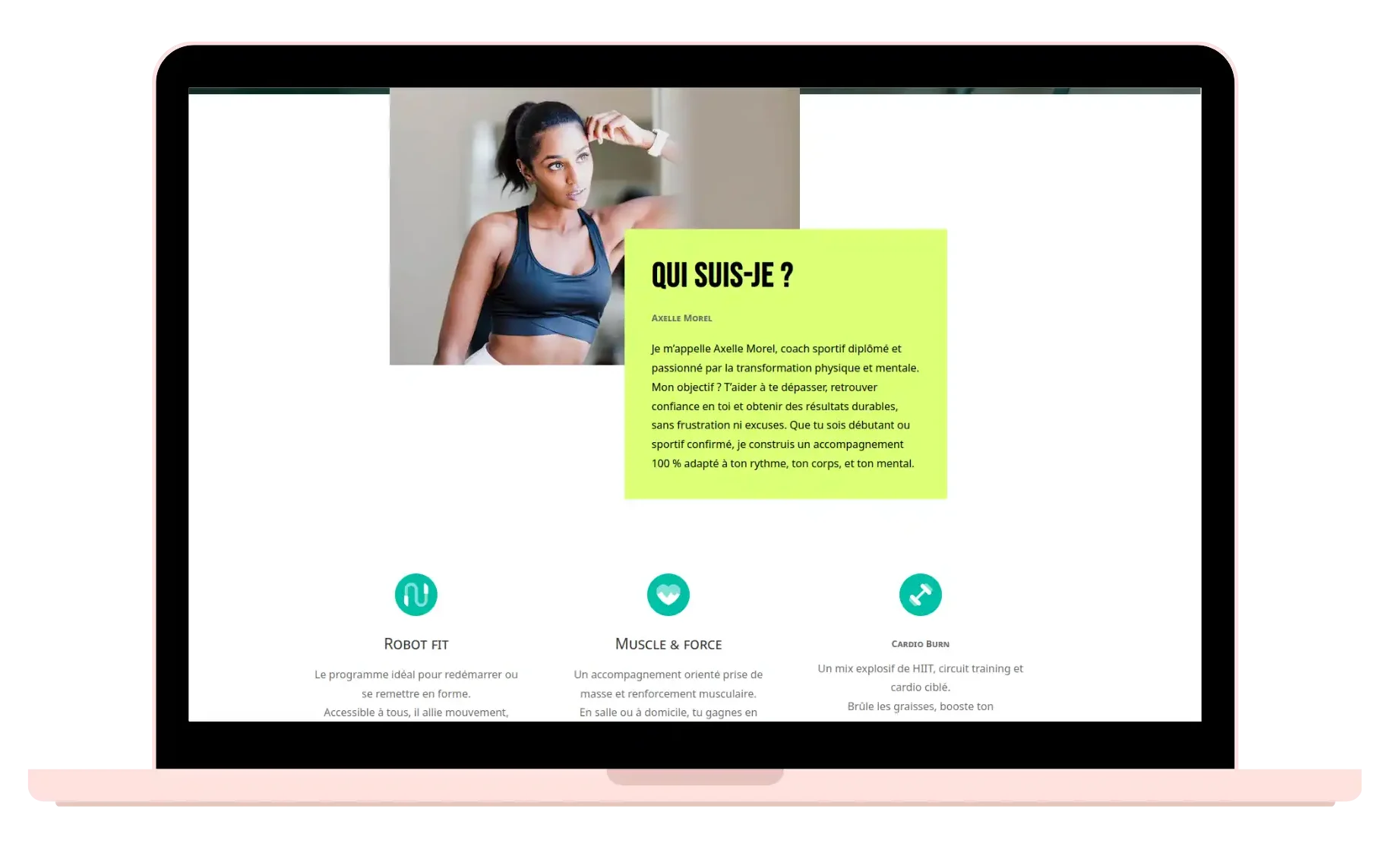 Un design dynamique et motivant, parfait pour les coachs, associations, clubs de sport qui souhaitent mettre en avant leurs programmes, leur approche et leurs valeurs.